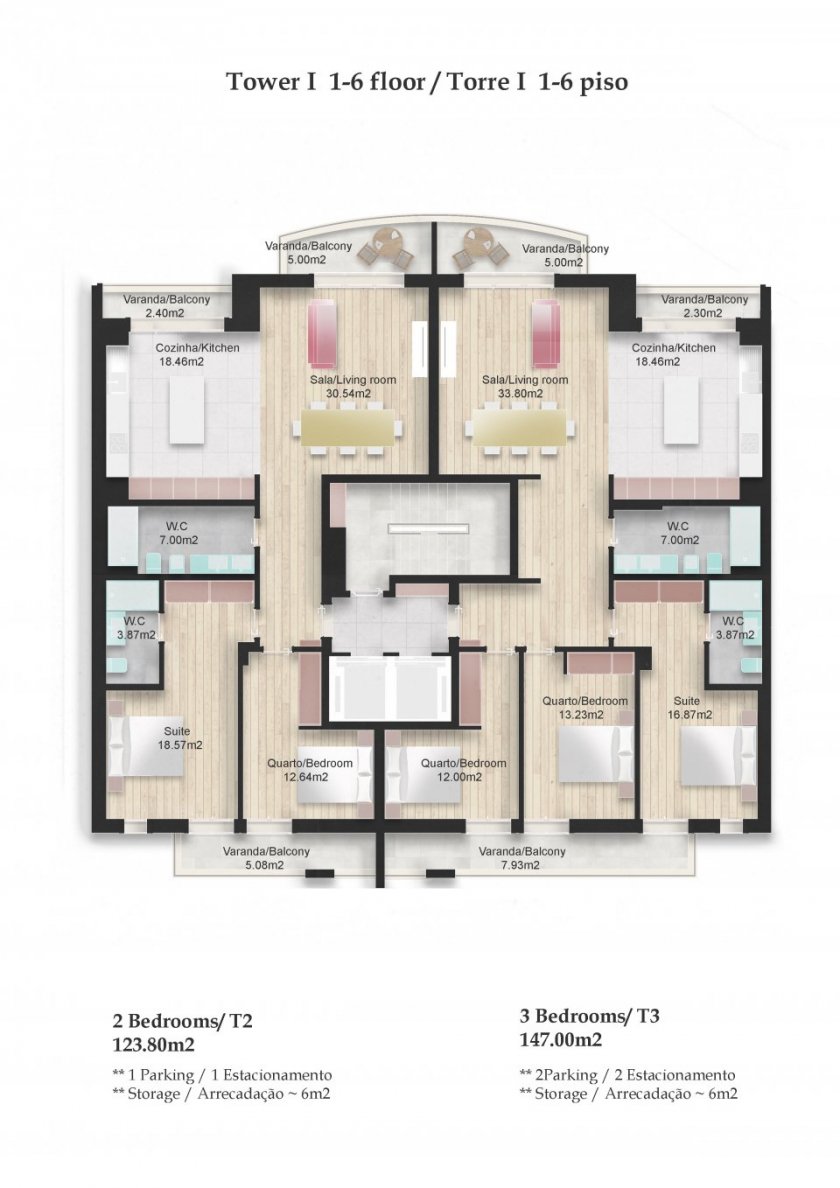 6th Floor - T3 128,00 m2 20,09 m2 148,09 m2 Sold